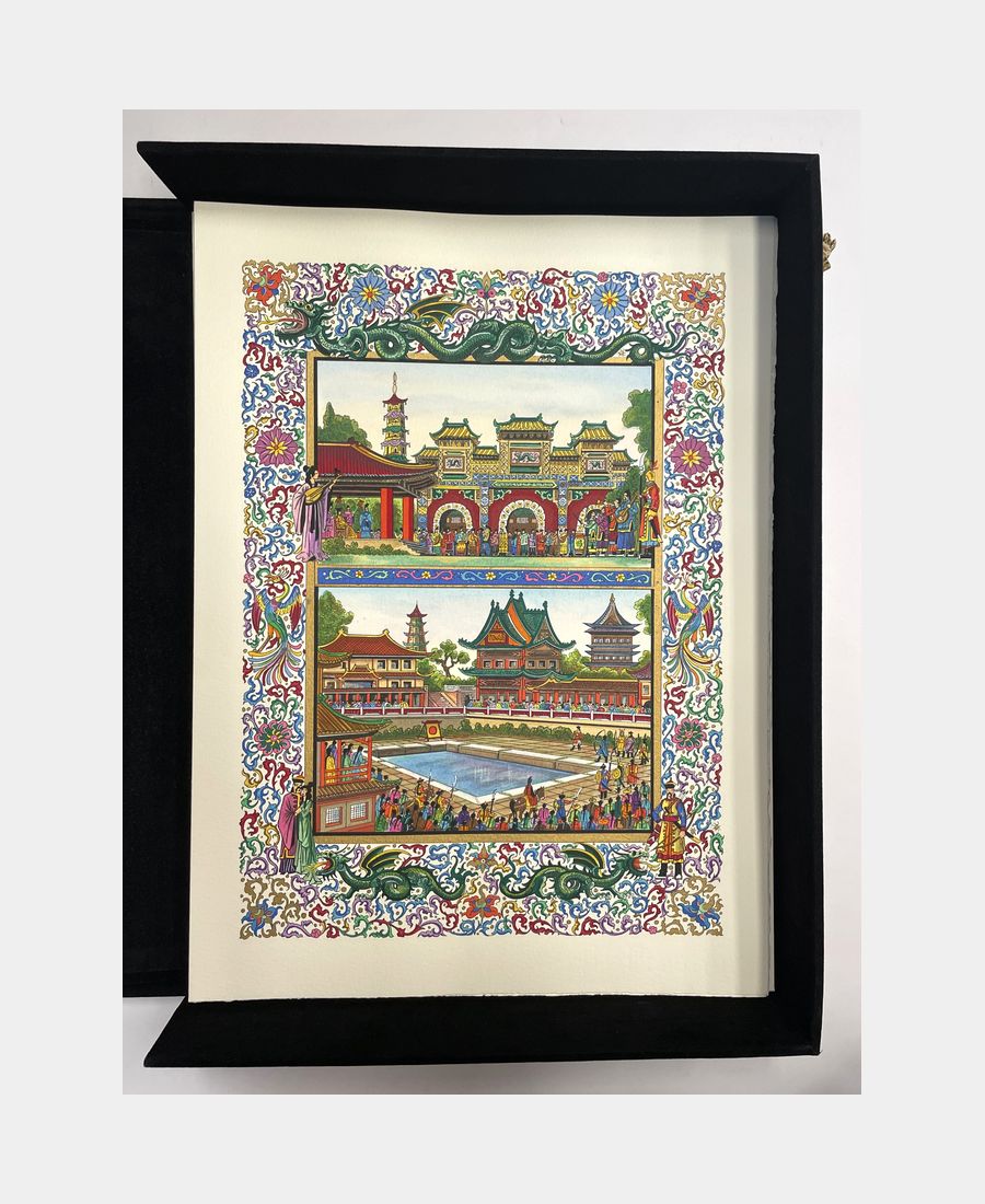 Nice, Le Chant des Sphères, Reliure d’Art Sefer, Edition de Prestige, 1988-1989, 2 volumes in-folio en feuilles sous chemise cartonnée et emboitage de l’éditeur recouvert de velours noir. Adaptation de Joseph Pardo. Edition agrémentée d’un foisonnement d’illustations de Jean Gradassi : encadrements de textes, illustrations en pleine page, doubles pages. Tirage limité à 1280 exemplaires numérotés. Un des 750 exemplaires sur velin d’Arches, n°1045. Complet des certificats signés par Gradassi et l’éditeur. Edition de prestige en très bel état.