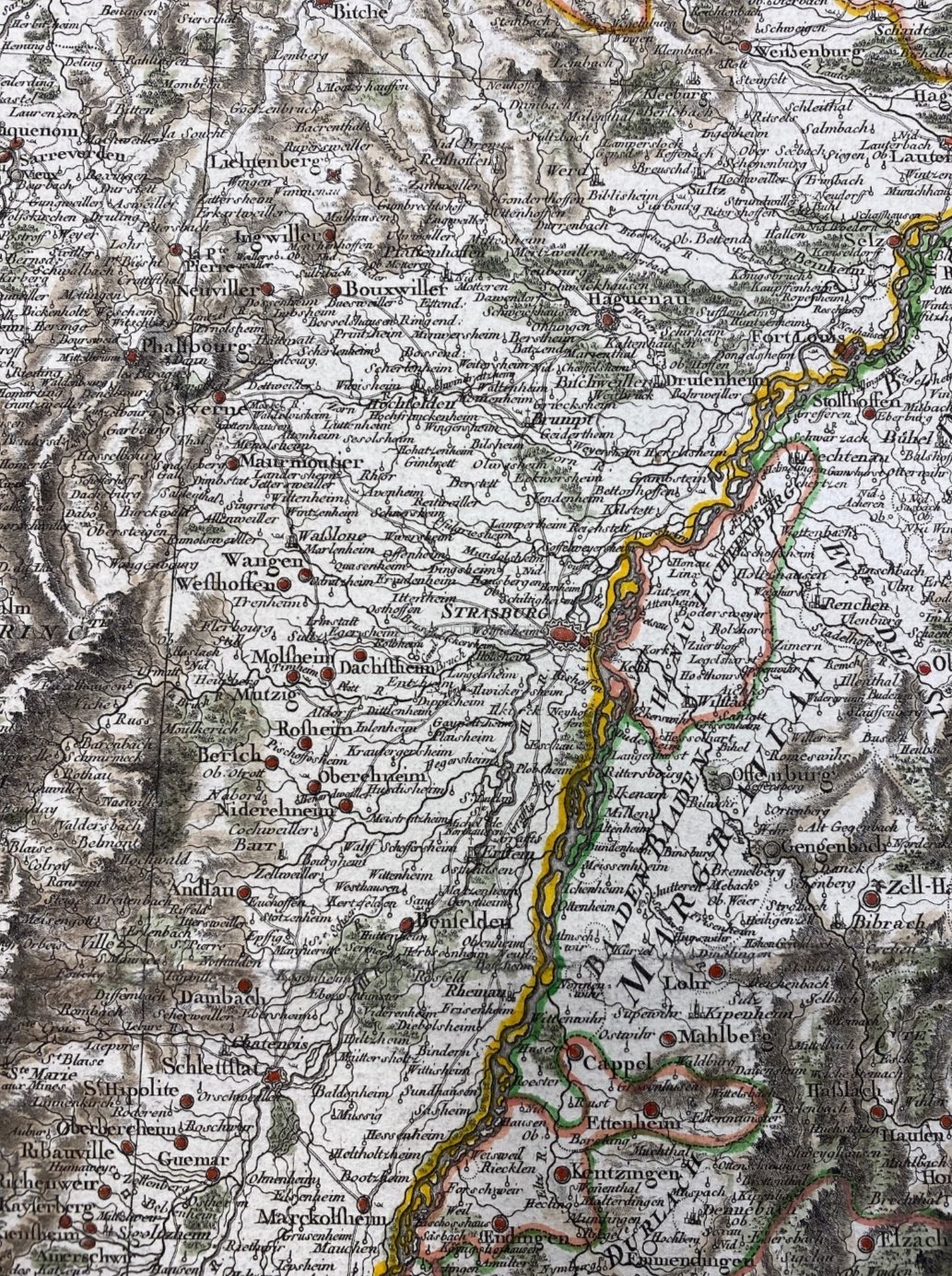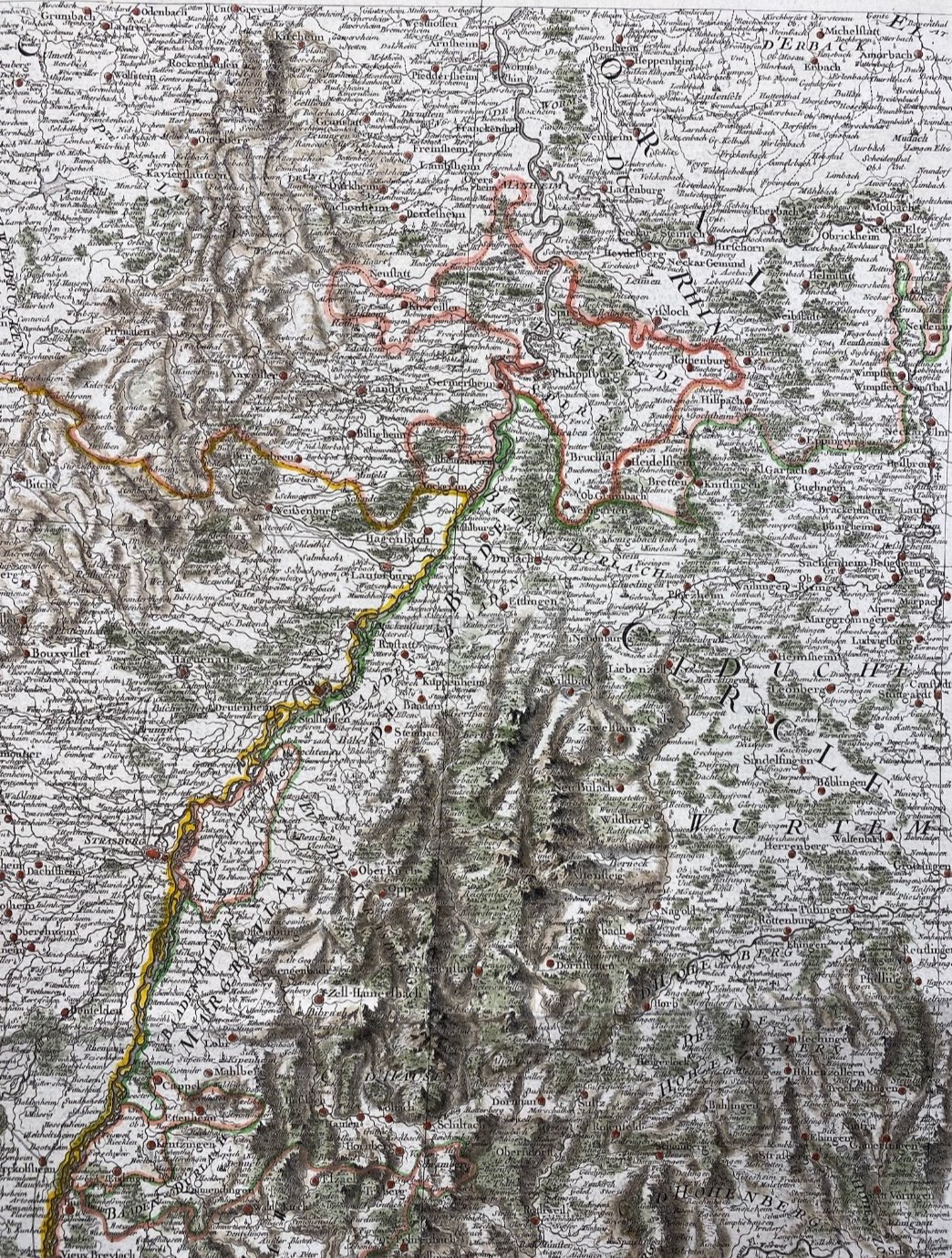 Carte de la région Rhénane, côté français et allemand