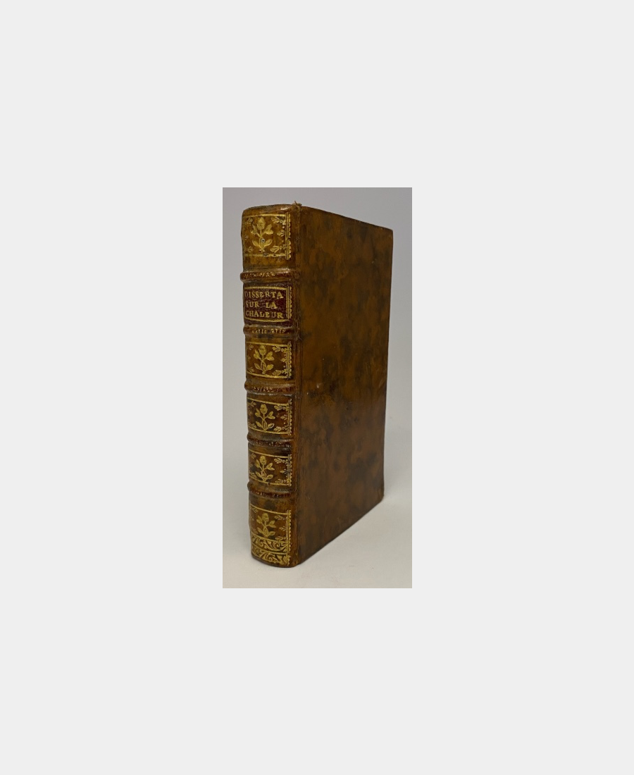 George MARTINE (Ecosse 1700 – 1741) , était un médecin et physicien écossais. Le présent ouvrage est consacré à la thermométrie et à l’étude expérimentale de la chaleur. Cette édition originale rassemble ses recherches publiées après sa mort et sera largement reprise et diffusée dans les compilations scientifiques du XVIIIᵉ siècle.