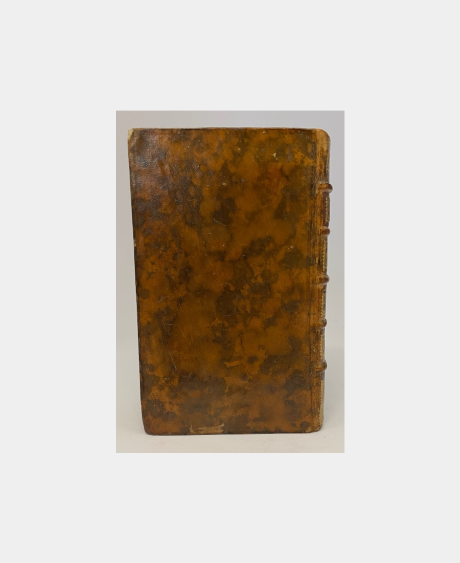 Couverture plein veau, dos à 5 nerfs et 6 caissons à fleurs dont pièce de titre rouge. 381 ff.