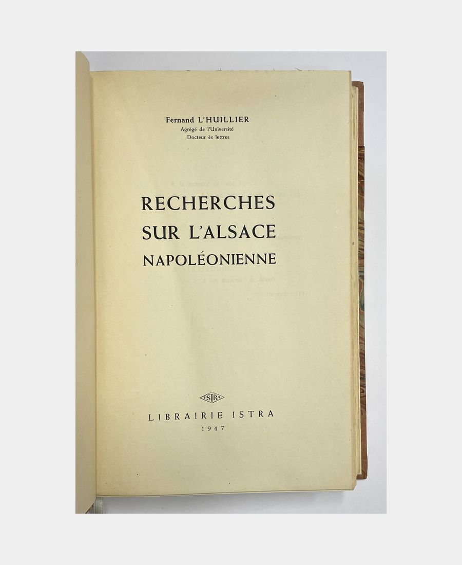 Recherches sur l’Alsace Napoléonienne. L’HUILLIER (Fernand). 1947.