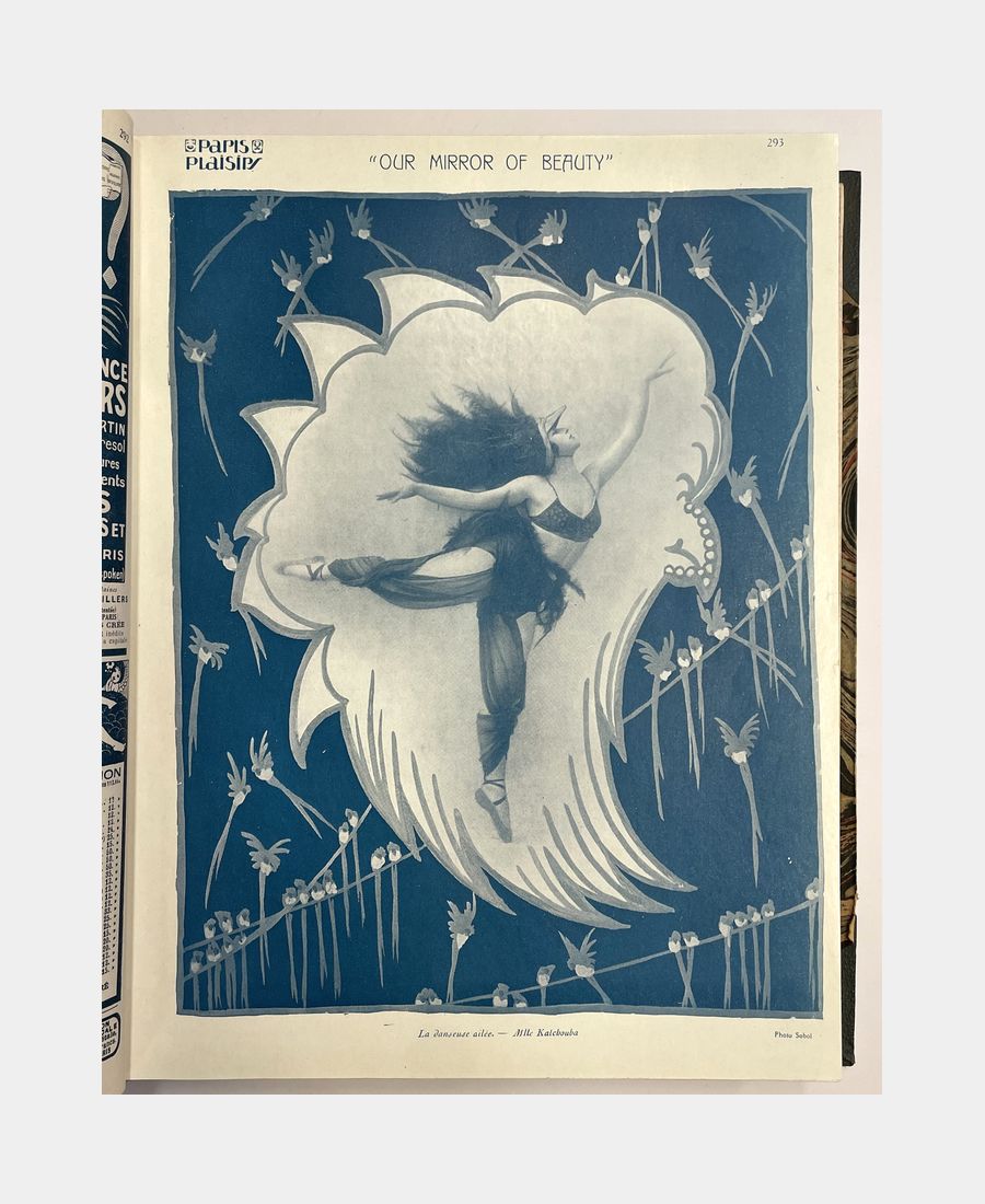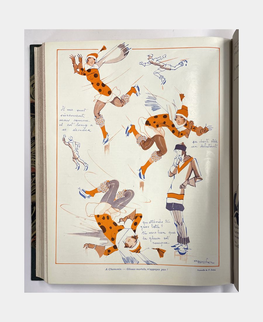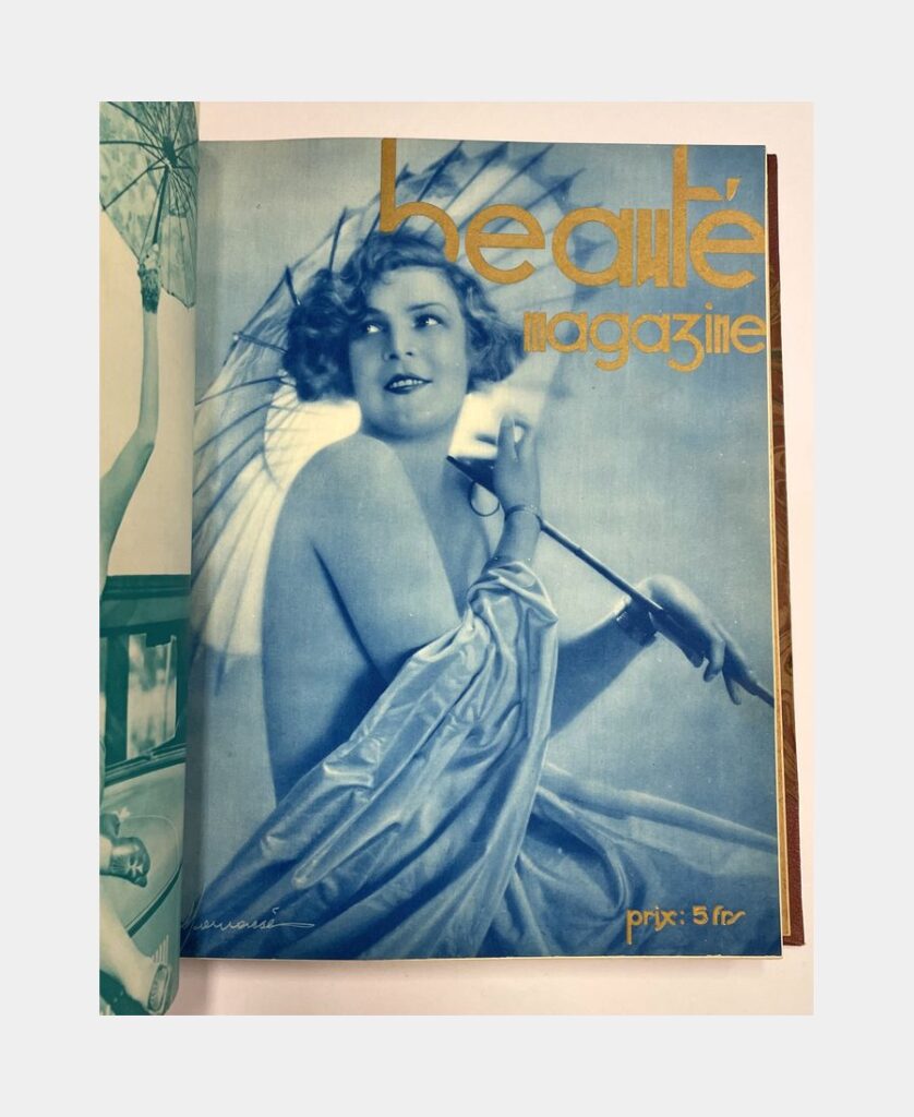 Paris, s.n., 1925 – 1927. Un volume in folio relié demi-toile à coins regroupant 43 numéros (sans les couvertures) de la revue mensuelle esthétique et humoristique Paris-Plaisirs des années 1920 (1925 à 1927). Nombreuses illustrations dont des photographiques.