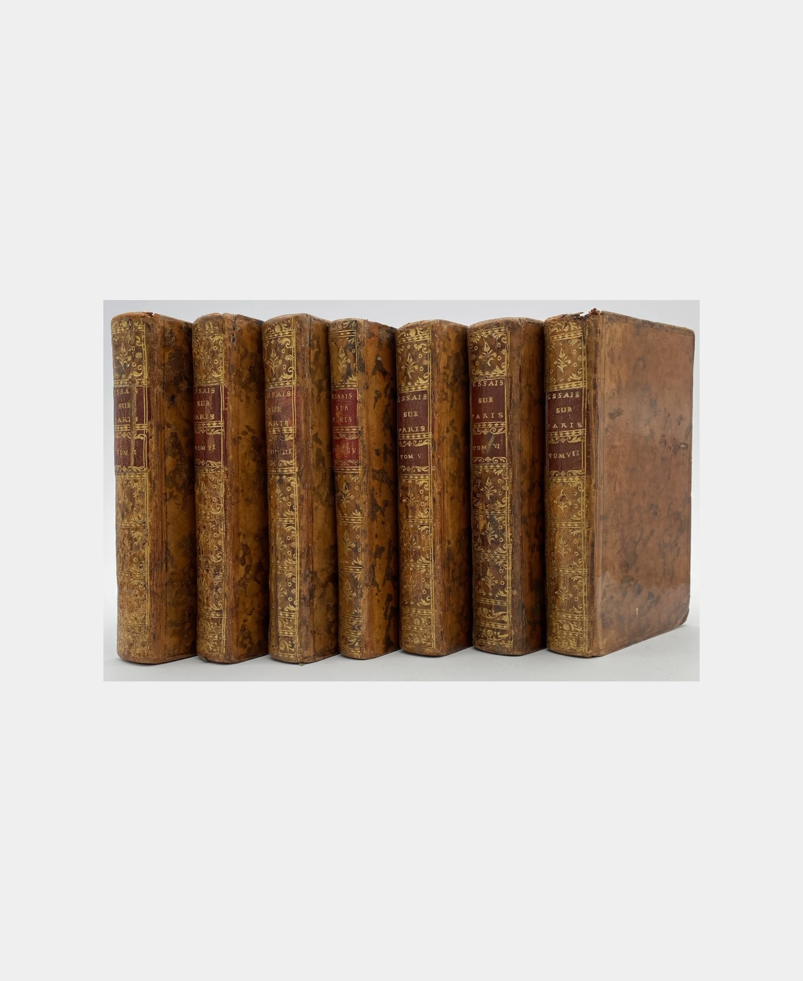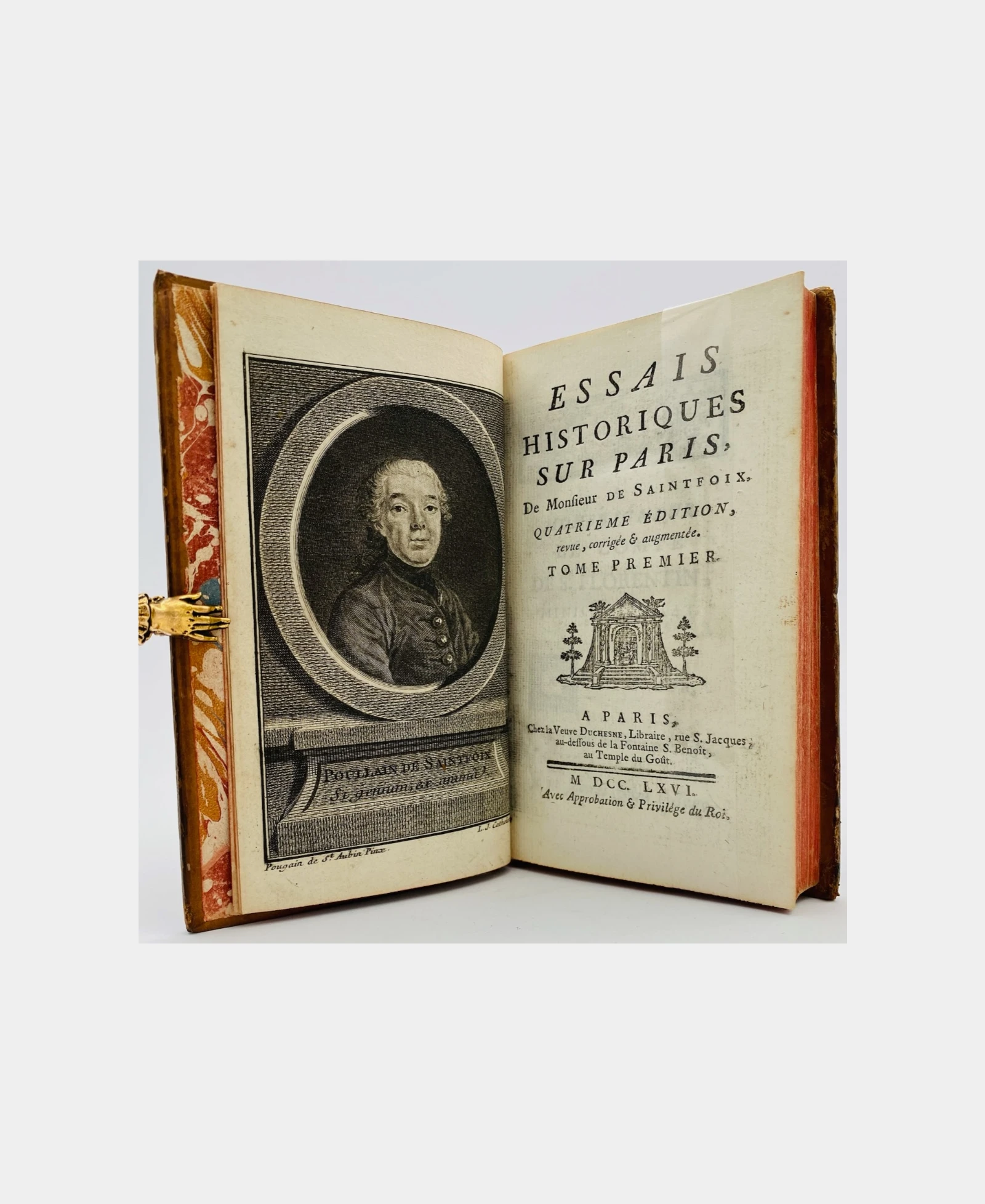 Ouvrage du XVIIIᵉ siècle qui décrit Paris à travers son histoire, ses rues, ses monuments et la vie quotidienne des habitants. Saint‑Foix mêle faits historiques et anecdotes pour donner un portrait vivant de la ville avant la Révolution. Exemplaire complet et rare sur le marché.