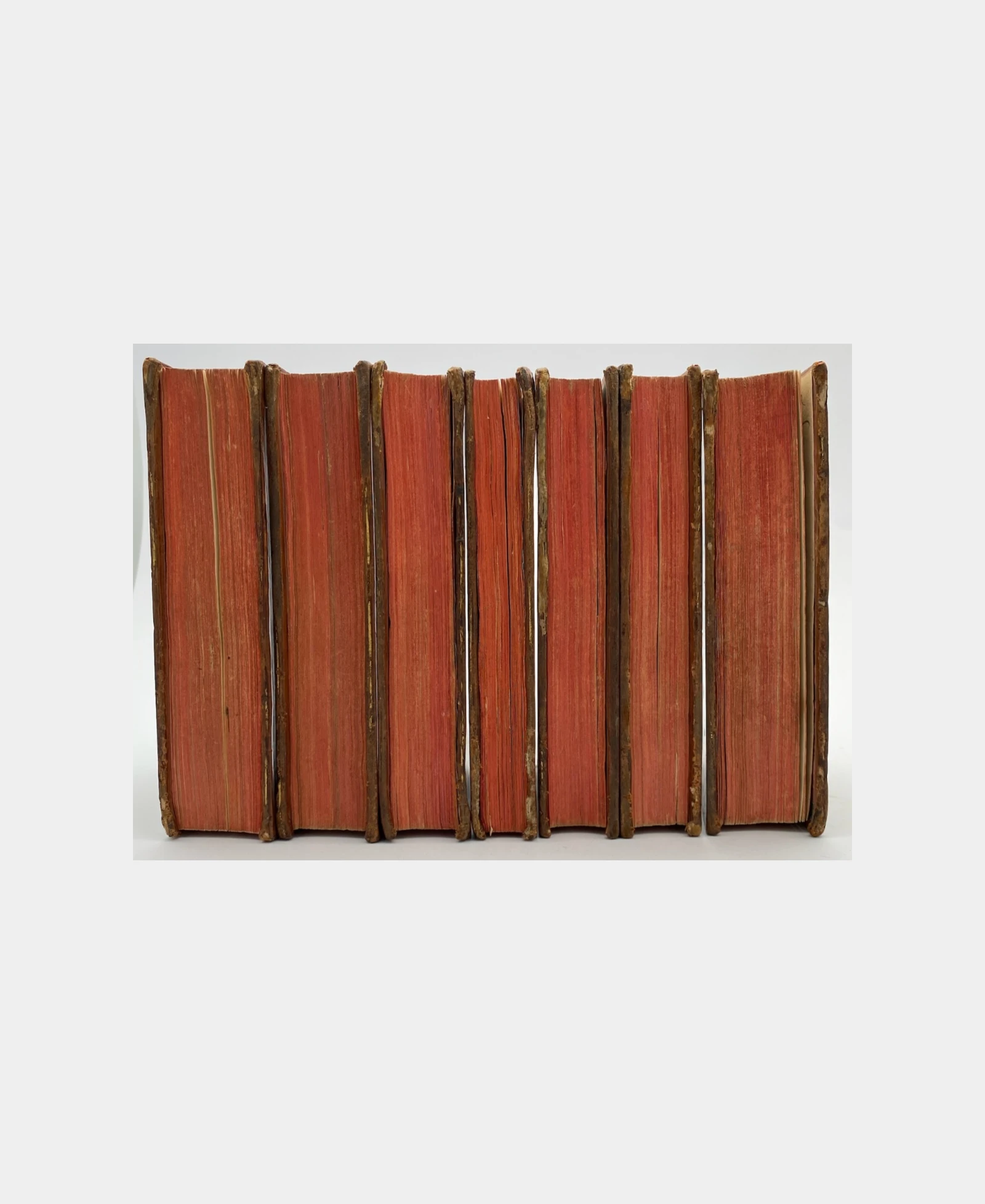 Etat: Légères usures aux coins et coiffes, reliures solides et homogènes. Petite fissure du mors supérieur du tome 3.