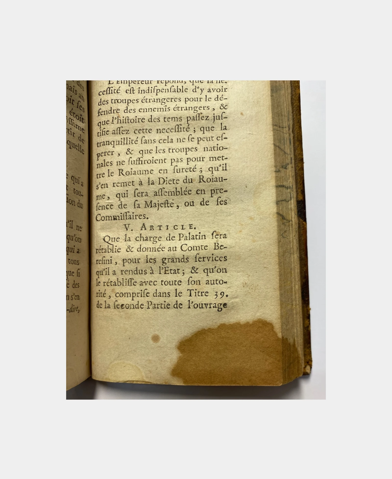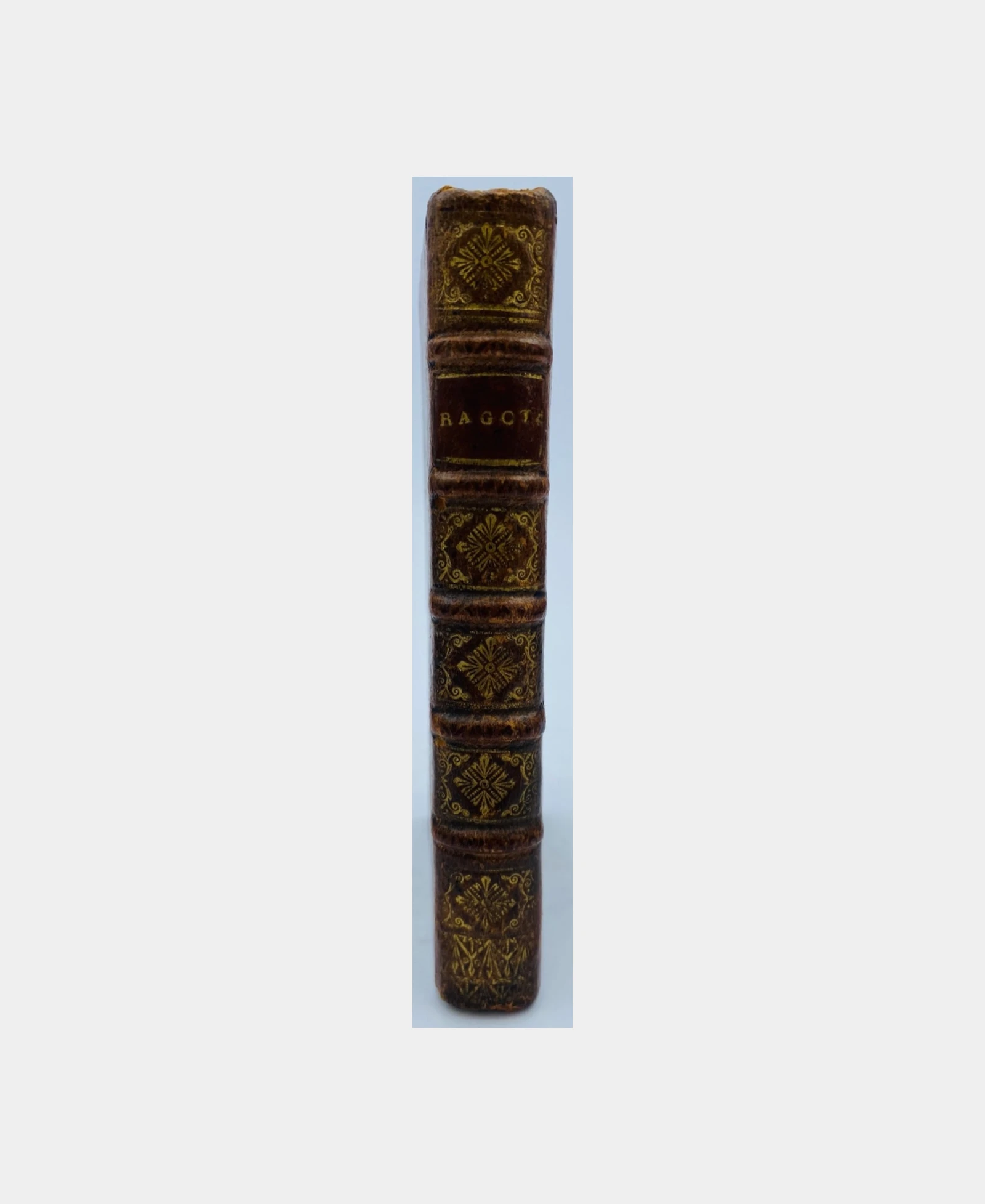 In-12, 346 pp., frontispice gravé représentant le prince Ragotzi. Reliure d’époque en basane brune, dos à nerfs orné, pièce de titre. Tâches d’humidité dans la seconde moitié de la partie droite inférieure de l’ouvrage, n’altérant pas le texte. Restauration ancienne du plat inférieur.