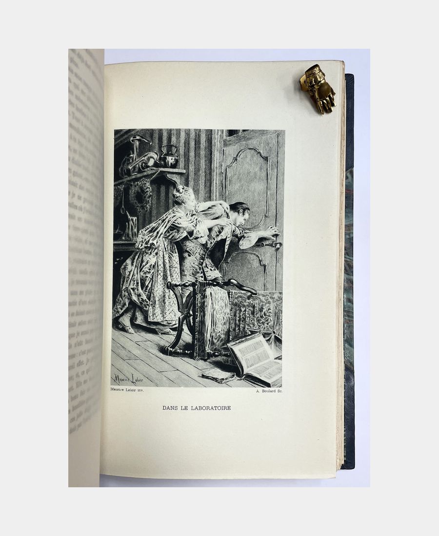 Paris, Jules Tallandier, s.d.; 3 grands volumes in-8 de 234 + 218 + 226 pp. Demi basane bleue à coins, dos richement orné à nerfs, pièce de titre. Très légers frottements. Jolies reliures avec les couvertures et dos d’origine conservés. Ce titre de la collection Les chefs-d’oeuvre de l’esprit est illustré de compositions d’après Maurice Leloir sous serpentes.